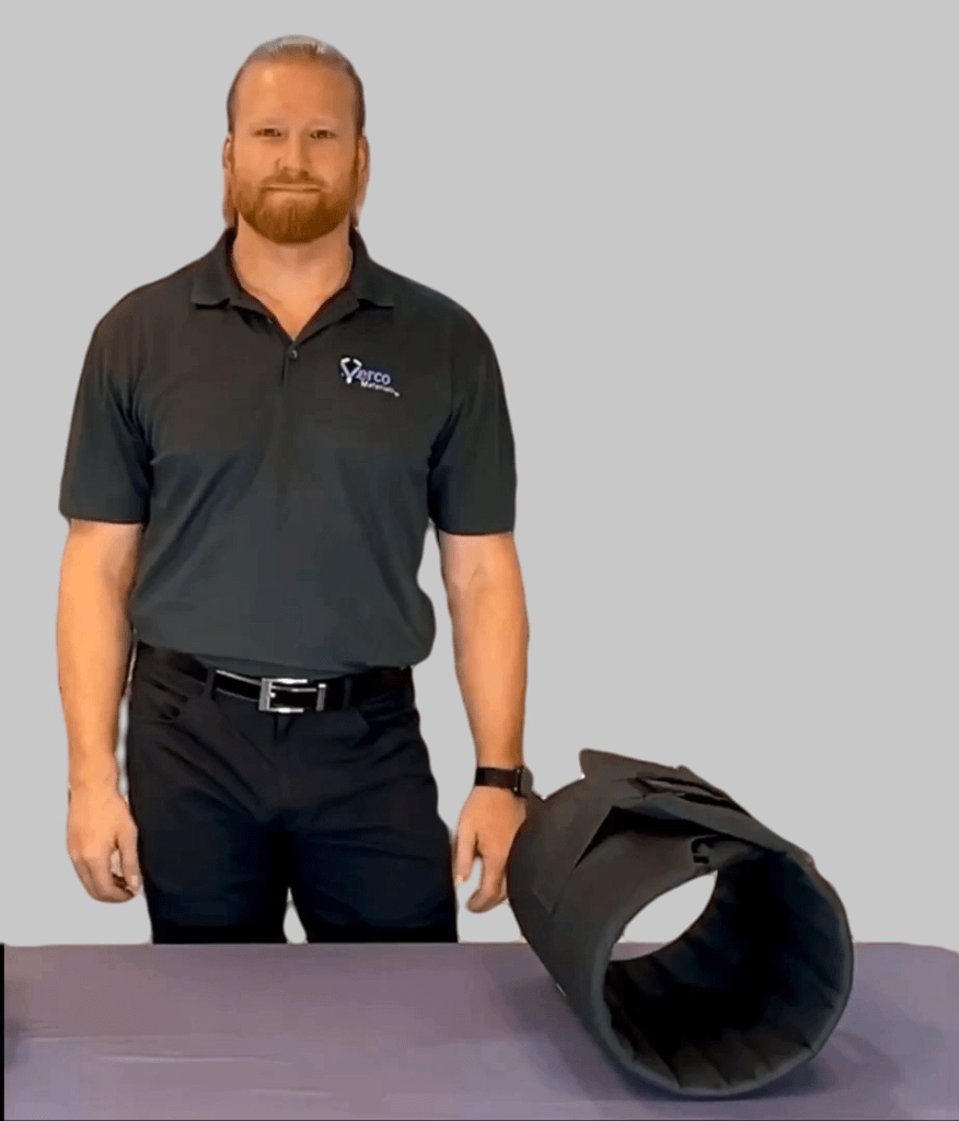Single-hand release, less than one-second deployment, multi-hit, compact ballistic shields, deploying to complete head-to-thigh coverage in a semi-rigid state.