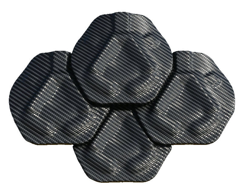 All VercoB4CTM tiles are wrapped in a patented, compressive carbon fiber weave epoxy prepreg to aid in containment of the ceramic.