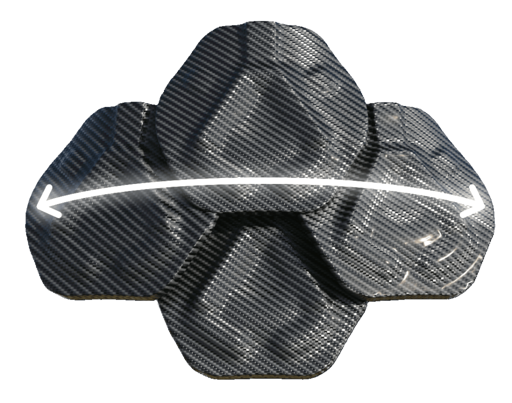 Tiles rock, showing limited flex without opening oblique gaps. Over an entire panel, this imbues conformability and pliancy.
