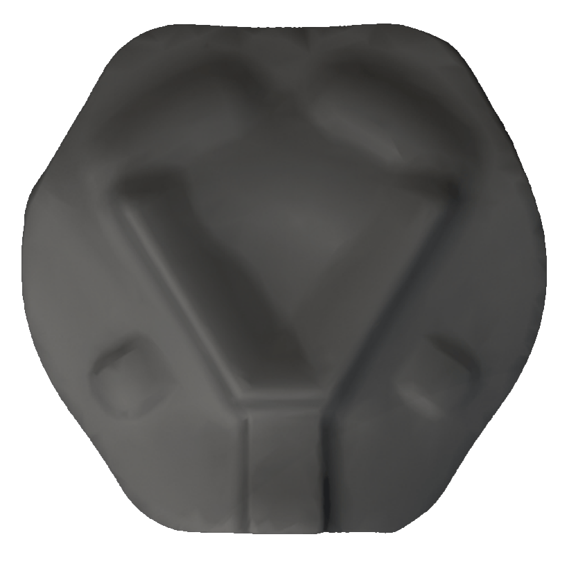 Rod heights indicate total tile thickness. Tile edge regions of 2- and 3-tile overlaps are thicker to compensate for edge weakening. This gives all locations of the imbrication pattern more equal ballistic performance.
